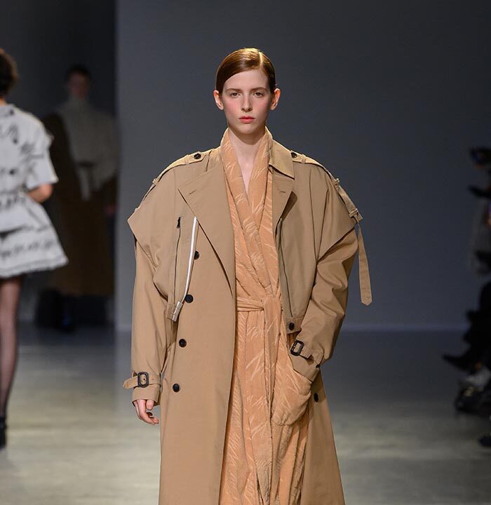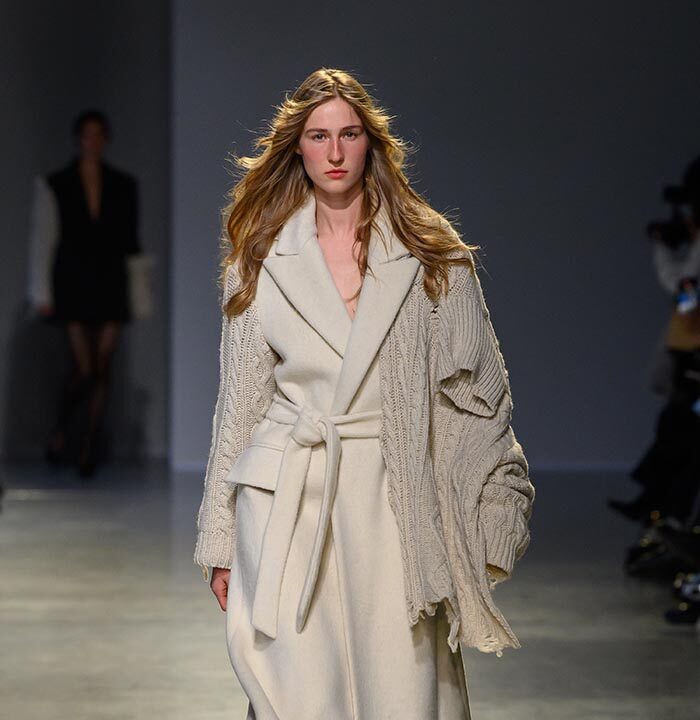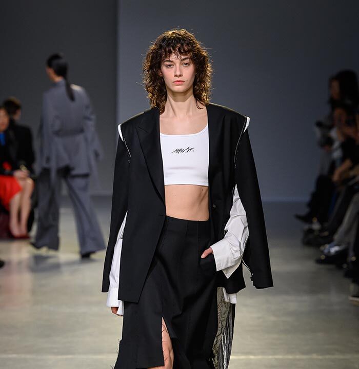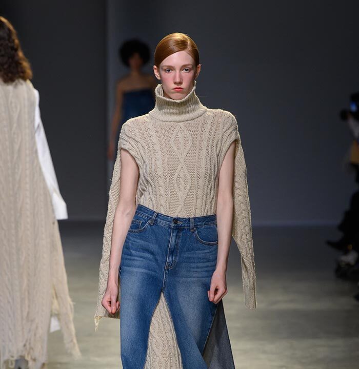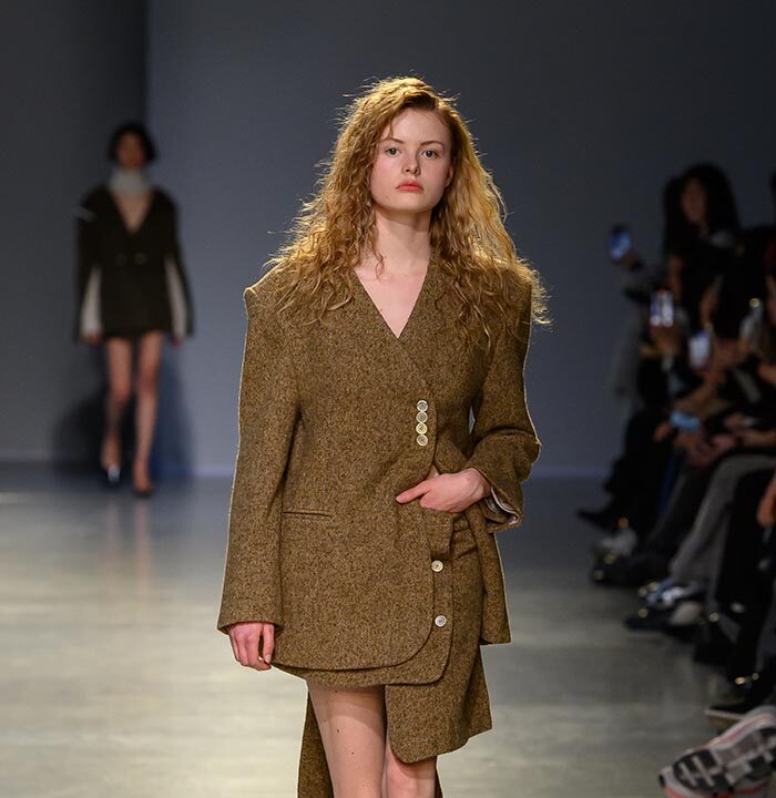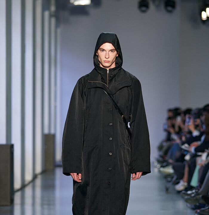 In the afternoon, EENK unveiled its collection inspired by contemporary Korean conceptual artist Kim Soo-ja’s Bottari series. Featuring layered coats and delicate silk fabrics that appeared to float in the air, the collection balanced traditional elements with modern aesthetics, presenting a distinctive fusion of Eastern and Western artistry.