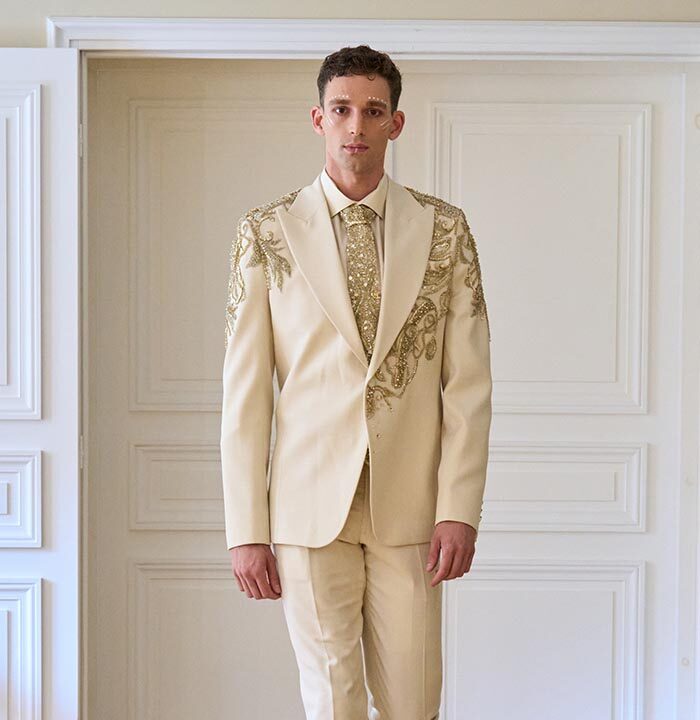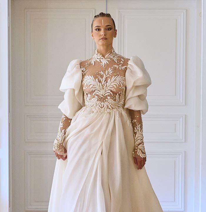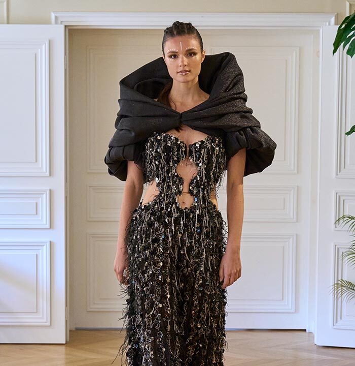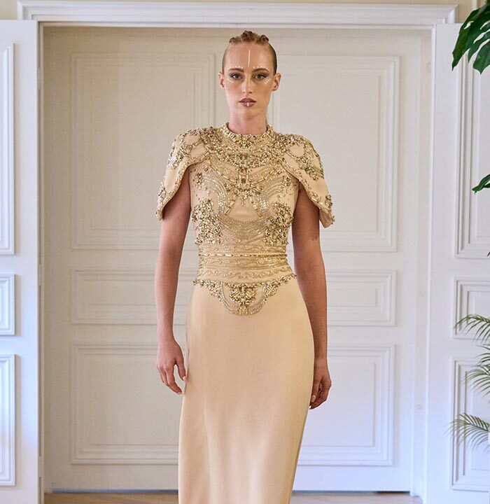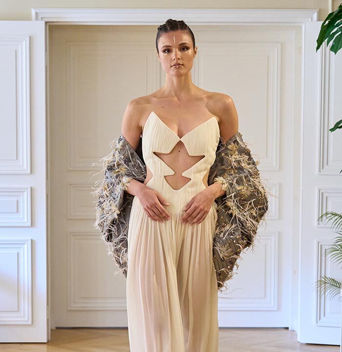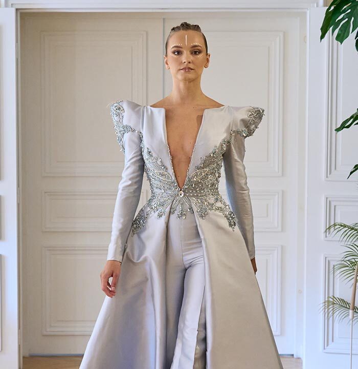 In this season’s vision, couture transcends decoration to reflect a journey of personal transformation. Each silhouette becomes a chapter in the soul’s awakening. Sculpted lines echo inner strength, while fluid drapes unveil the beauty of vulnerability. Intricate embroideries trace paths of memory—where shadows gently give way to light.