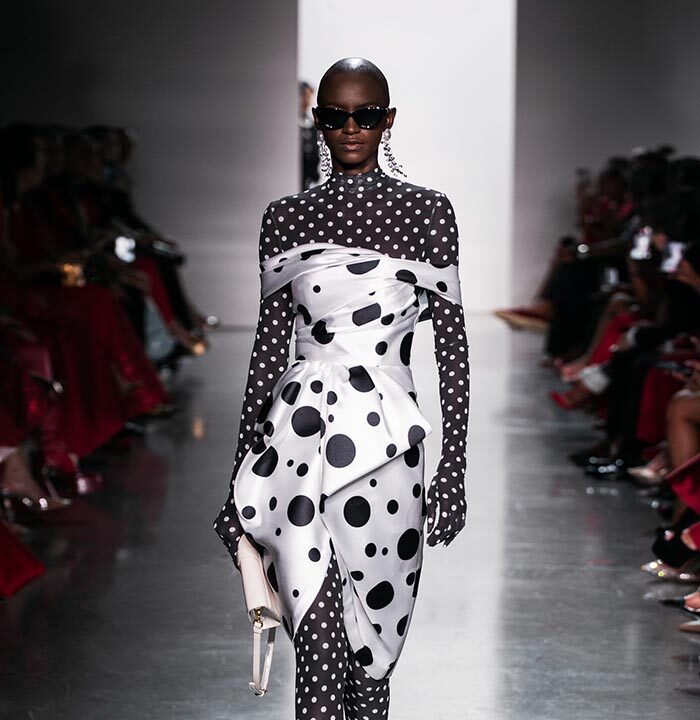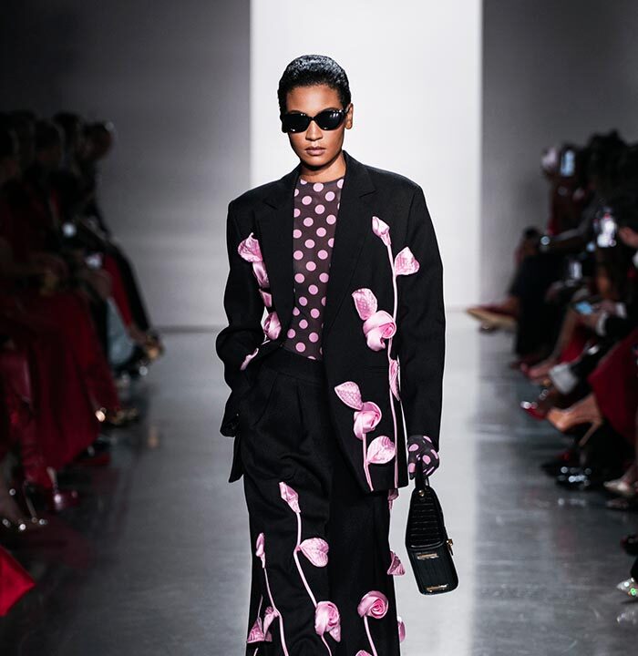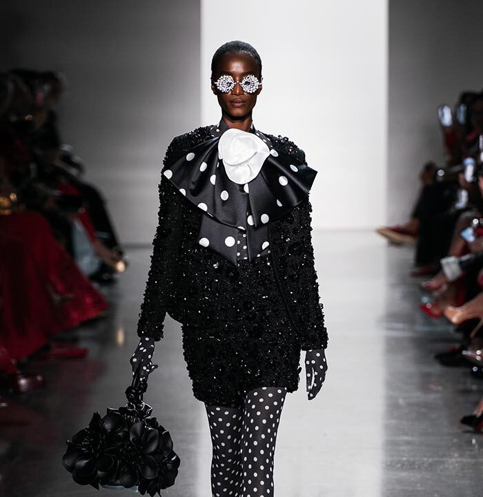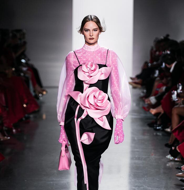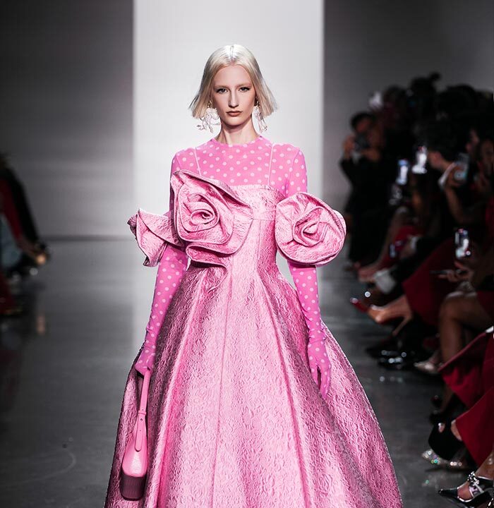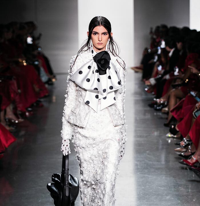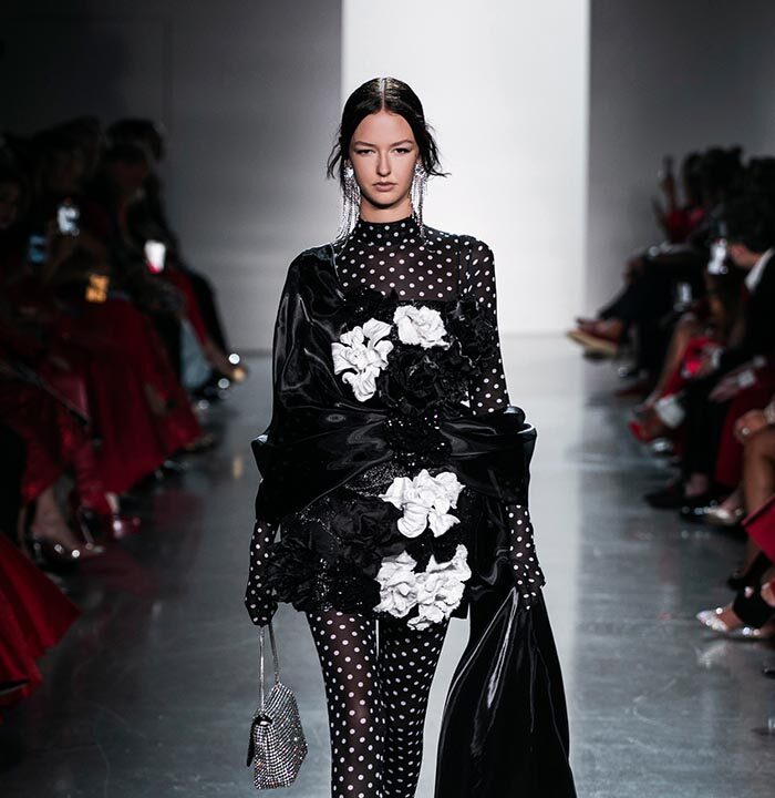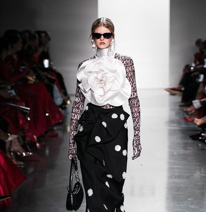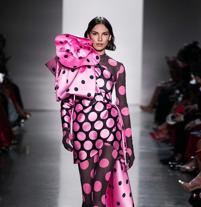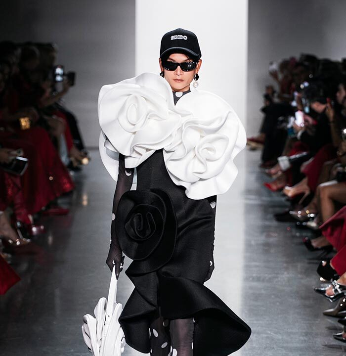 Using a dominant palette of black, white, pink and polka dots (a signature element of Do Manh Cuong), the collection featured tweed, brocade, taffeta, organza, cotton, silk, and chiffon incorporated across expert tailoring techniques and intricate embellished pieces. Advanced draping and 3D floral designs, another SIXDO hallmark, were also on full display on the runway where the label introduced for the first time 3D floral bags that took over two months to develop.