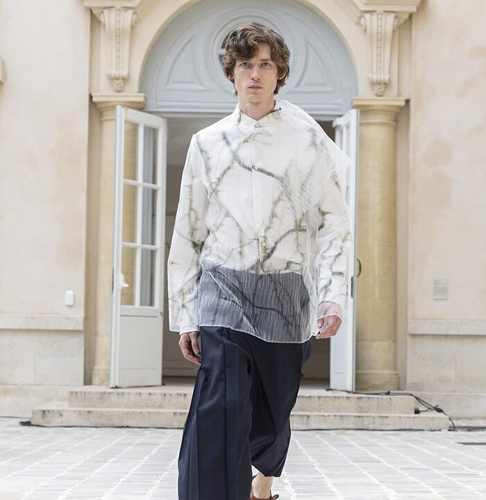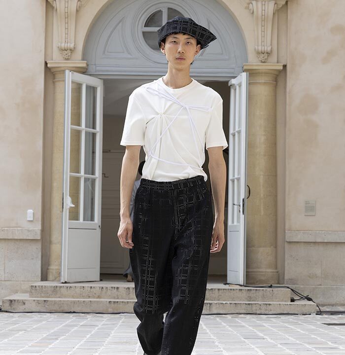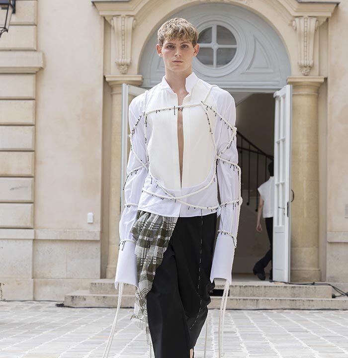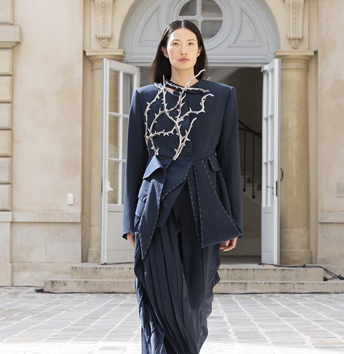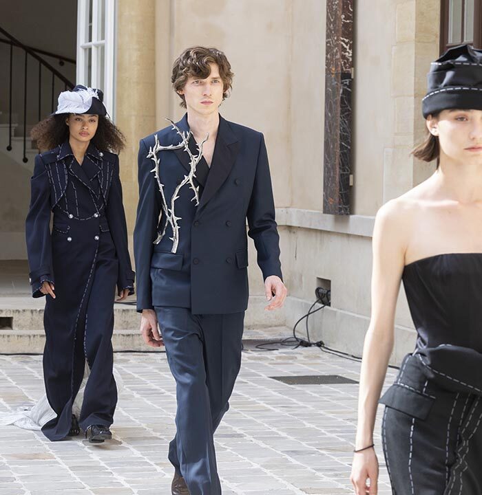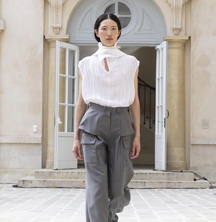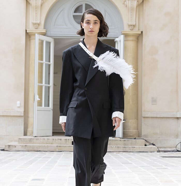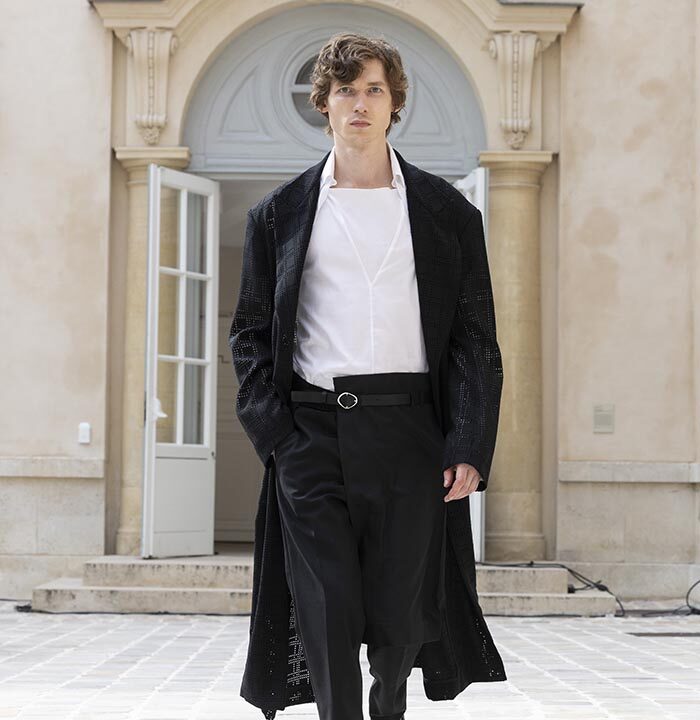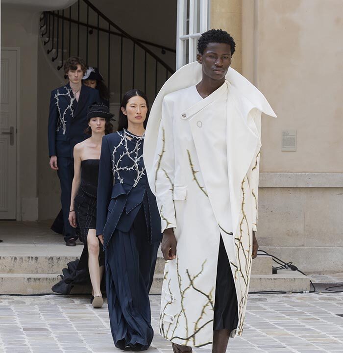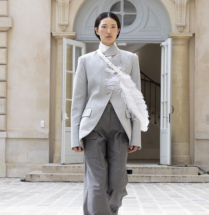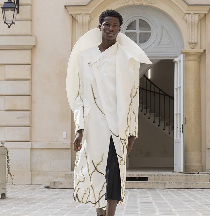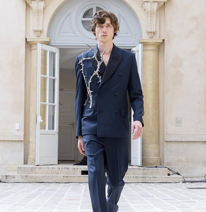 His house skillfully combines gender-neutral codes with architectural pieces rooted in the heritage of Parisian couture.