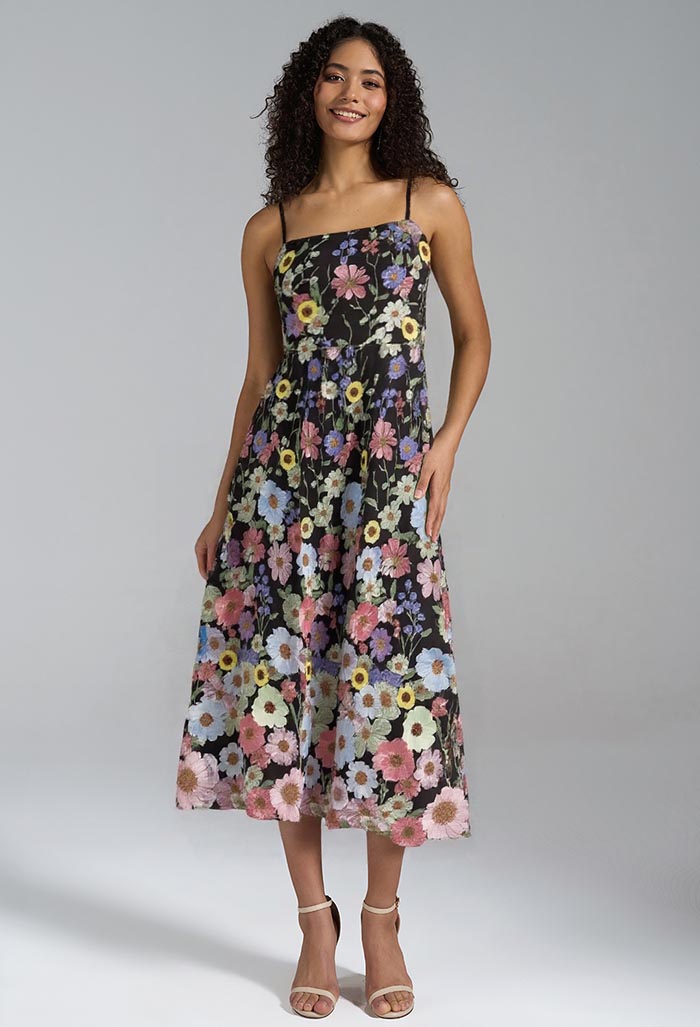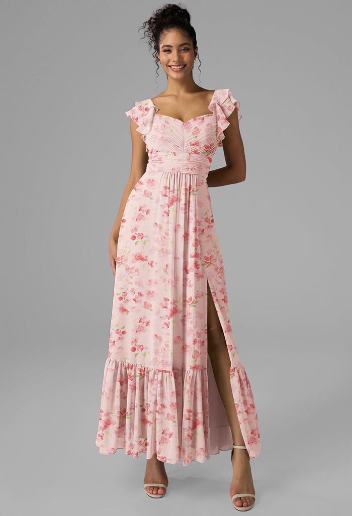 For daytime affairs under the sun, the AW Aneesa dress is a showstopper. Its watercolor-inspired palette—think soft lavender, sky blue, and buttery yellow—evokes a carefree vibe, while the lightweight chiffon fabric skims the body without clinging. The midi length strikes the ideal balance between polished and playful, making it perfect for vineyard or backyard weddings.