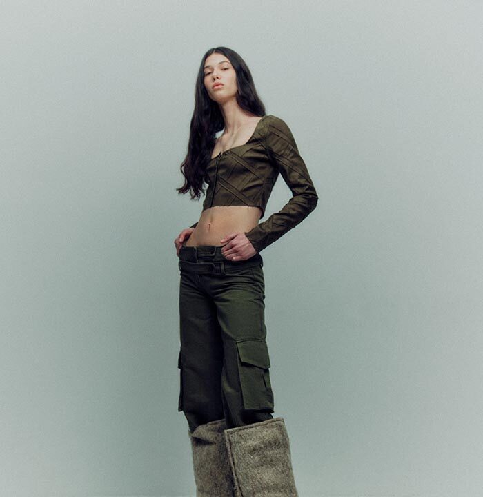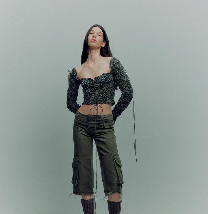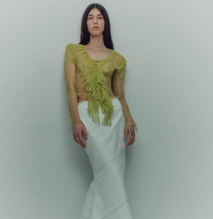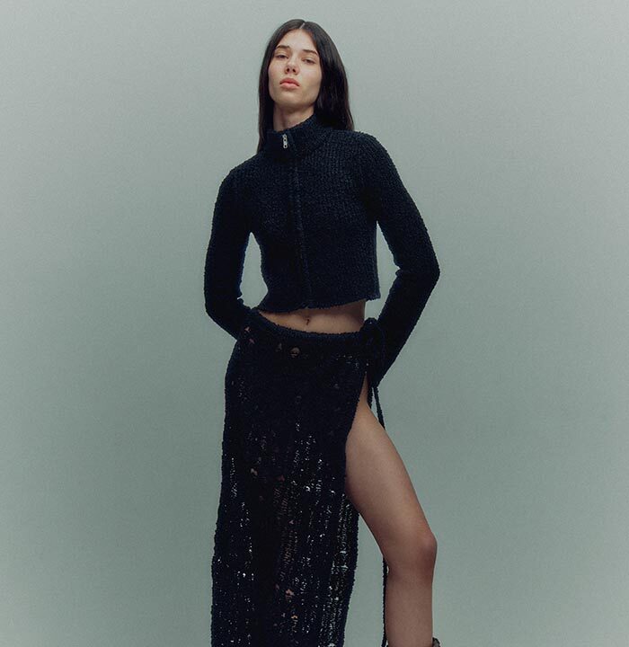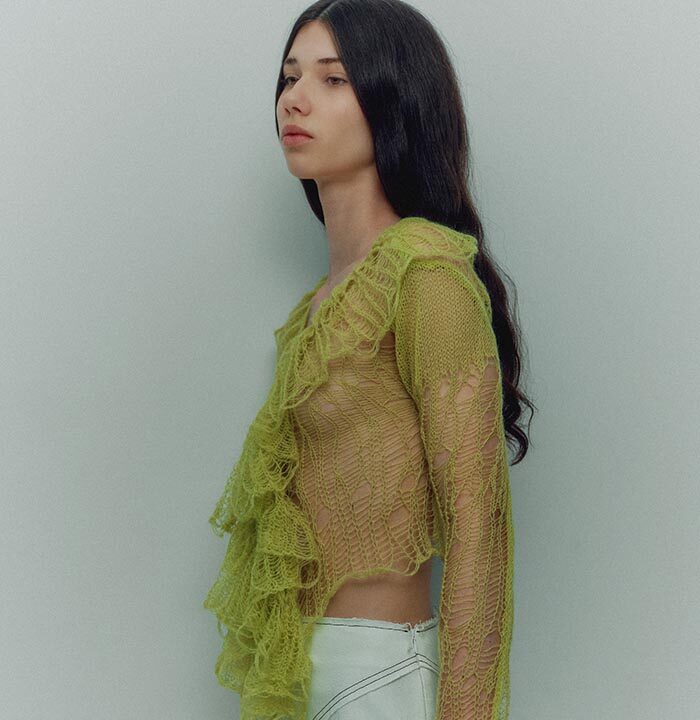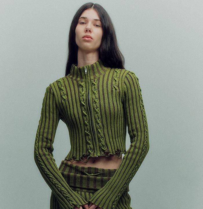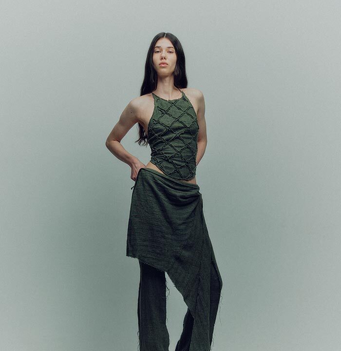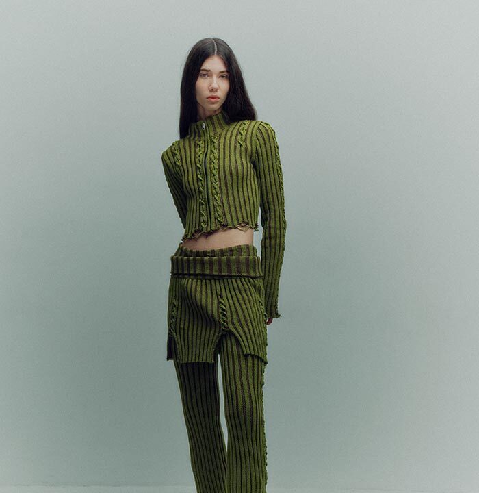 TG Botanical introduces the very first collaboration with Dasha Tsapenko’s bio-atelier in the AW24 collection. Artist Dasha Tsapenko made a unique selection of knitted styles made of natural plant-based yarn and inoculated with spores of polypore fungus. This project is a manifest of collaboration and co-creation in its broadest sense: between brands (TG Botanical x Atelier Dasha Tsapenko), disciplines, countries and between species (human x fungi).