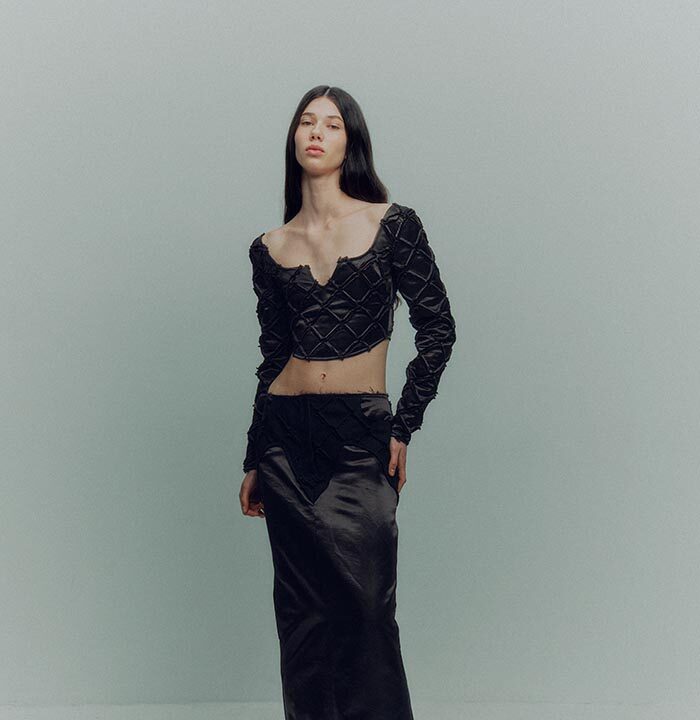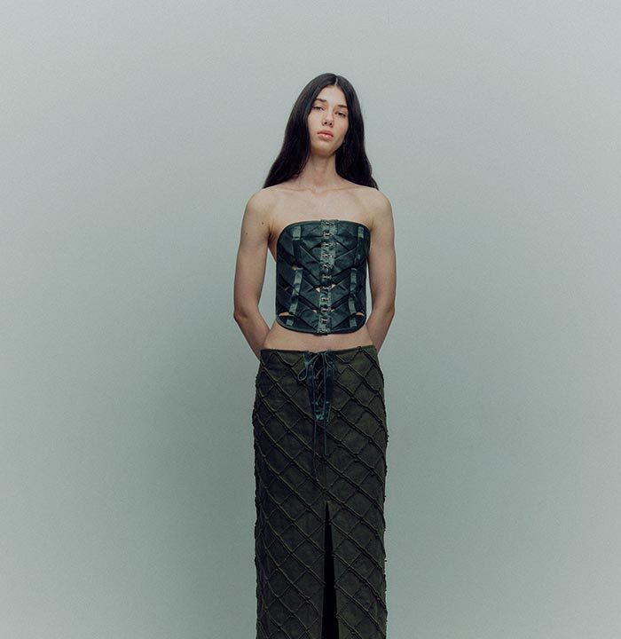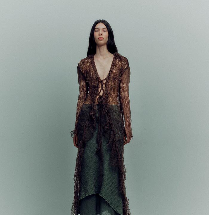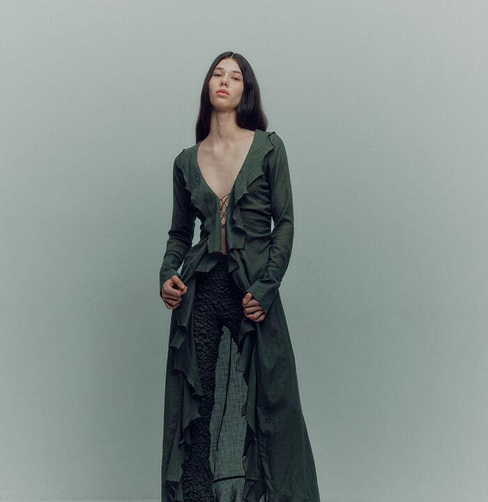 TG Botanical AW24 collection is an expression of the unique primal energy hidden in earth — the giving and taking source of life on the planet. With the new collection the designer Tetyana Chumak wants to remind us that we are all māteria and it can be as dark as it can be celestial.