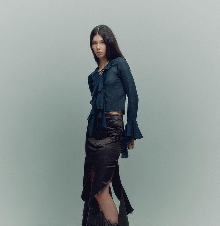 Tetyana takes pride in leading a team of 30 talented women, and during the war in Ukraine, she focused her efforts on supporting her employees, using all available means to help maintain their jobs. Tetyana and her team strive to prove that a modern wardrobe can and should be more conscious, and continue to work on developing new fabrics and techniques to reduce the impact on the environment season by season.