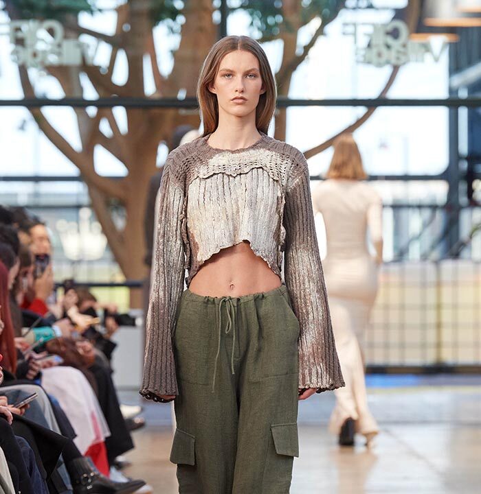 TG Botanical introduces the very first collaboration with Dasha Tsapenko’s bio-atelier in the AW24 collection. Artist Dasha Tsapenko made a unique selection of knitted styles made of natural plant-based yarn and inoculated with spores of polypore fungus. This project is a manifest of collaboration and co-creation in its broadest sense: between brands (TG Botanical x Atelier Dasha Tsapenko), disciplines, countries and between species (human x fungi).