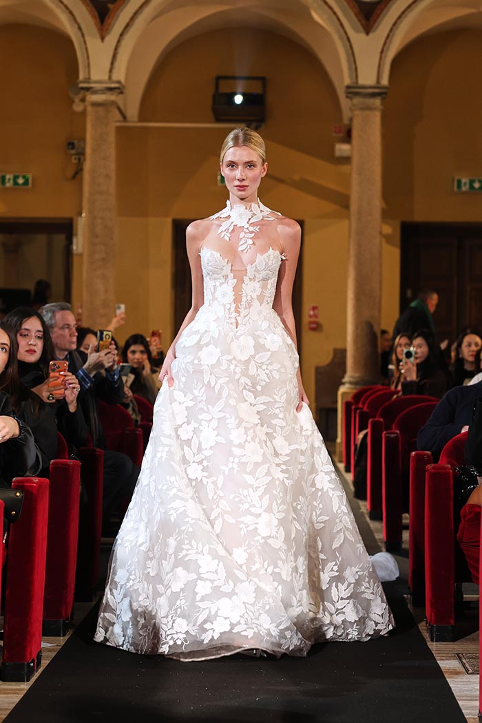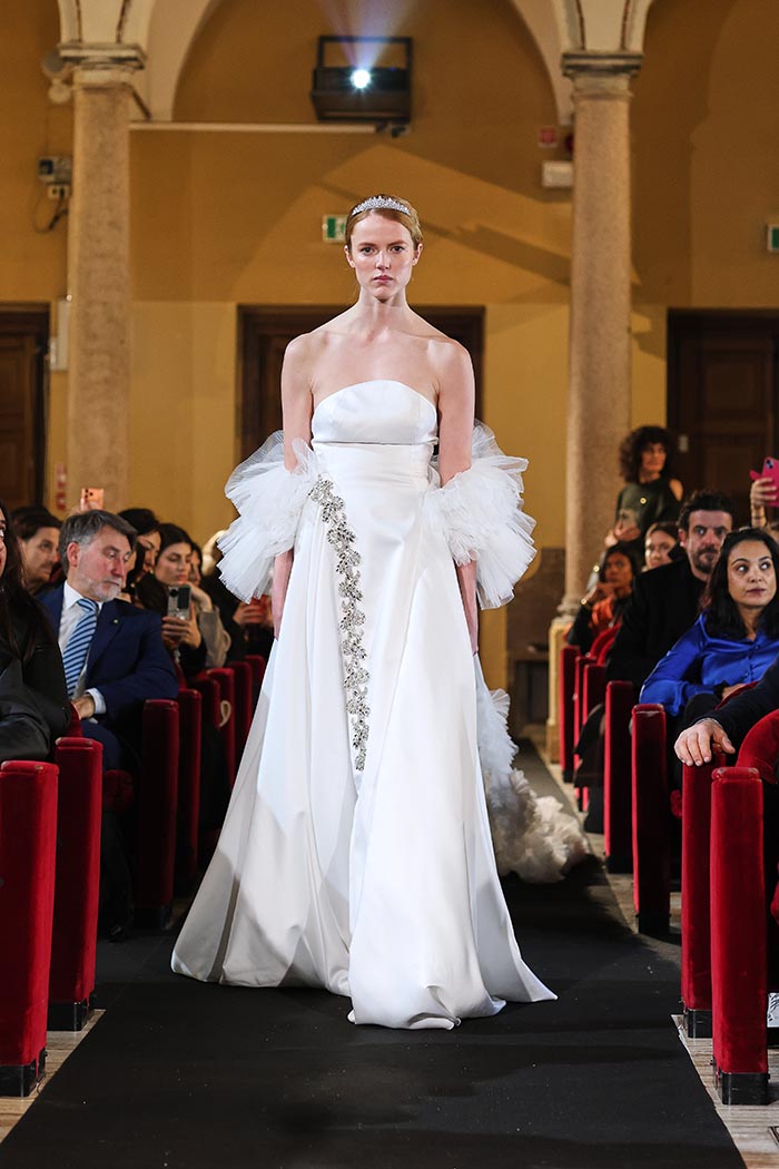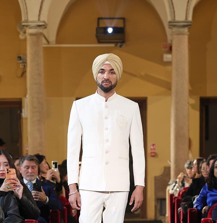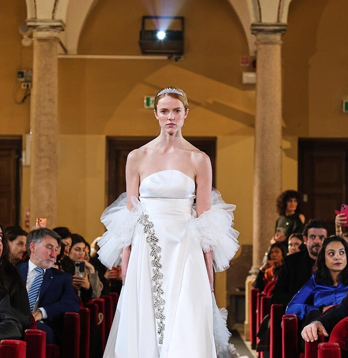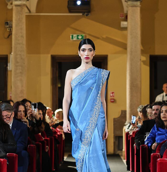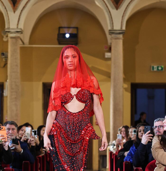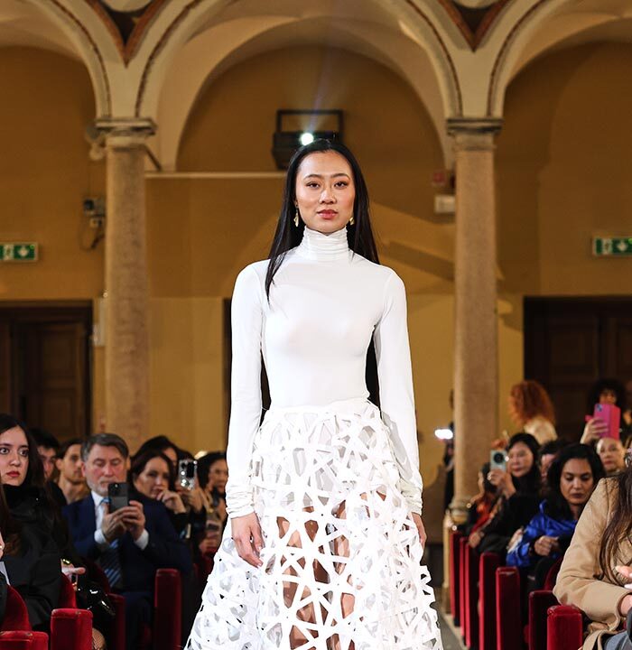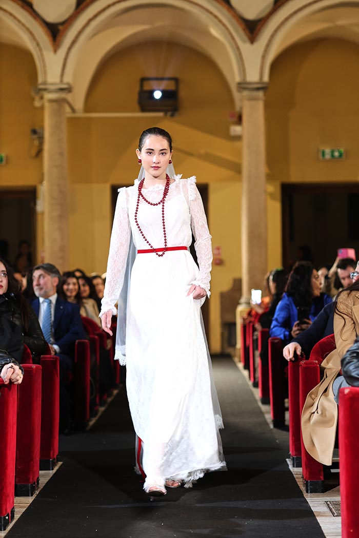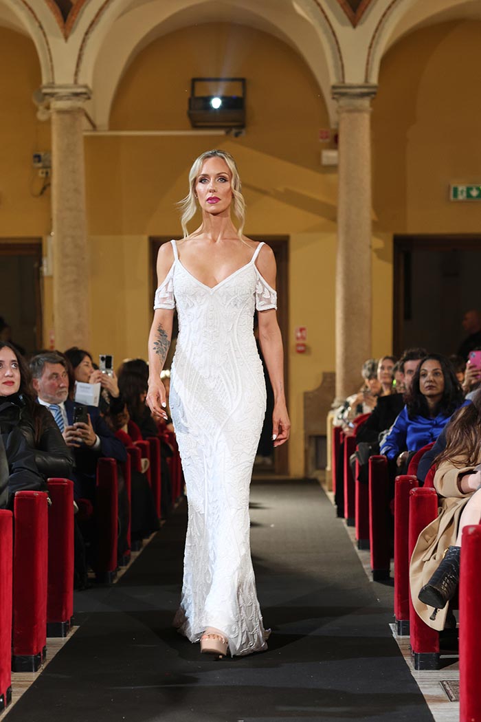 More than a fashion show, the event became a curated experience where identity, craftsmanship, and contemporary vision converged into a global dialogue. Hosted inside the historic Centro Ambrosiano — an architectural complex dating back to 1232 — the event, conceived and directed by Yuliia Palchykova, presented nine international designers within an immersive narrative where haute couture, bridal couture, author jewelry, and conceptual fashion merged into one cohesive artistic statement. Through architectural silhouettes, sculptural tailoring, symbolic detailing, and bold chromatic language, the show articulated fashion as an expression of heritage, transformation, and global consciousness.