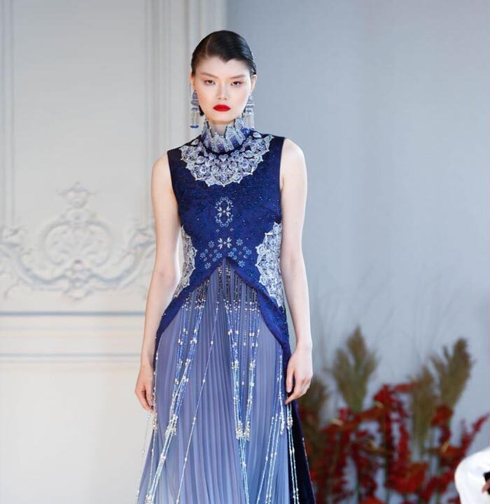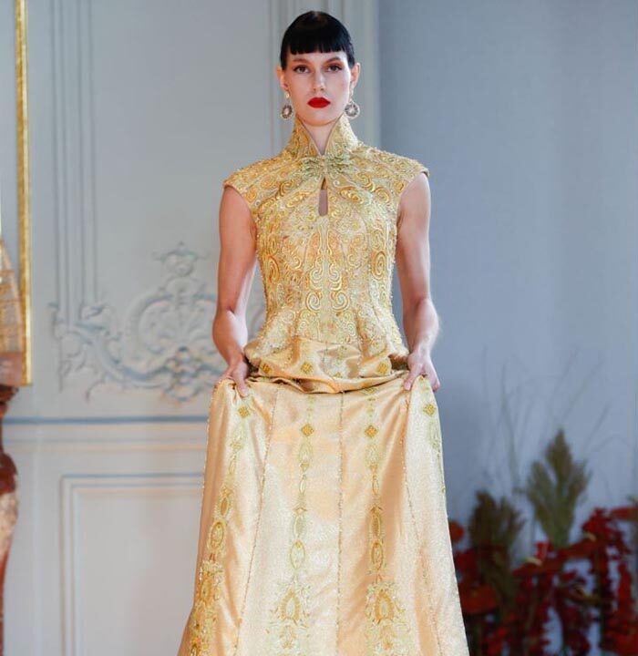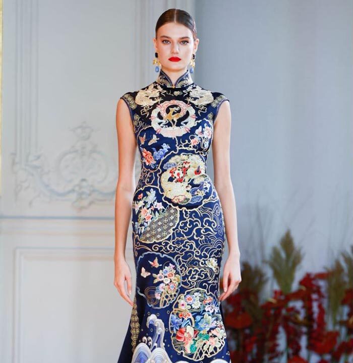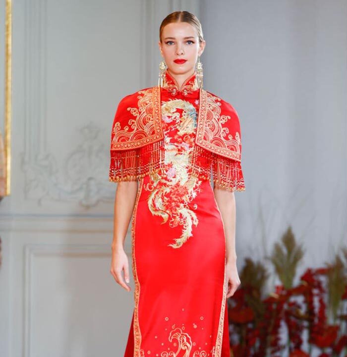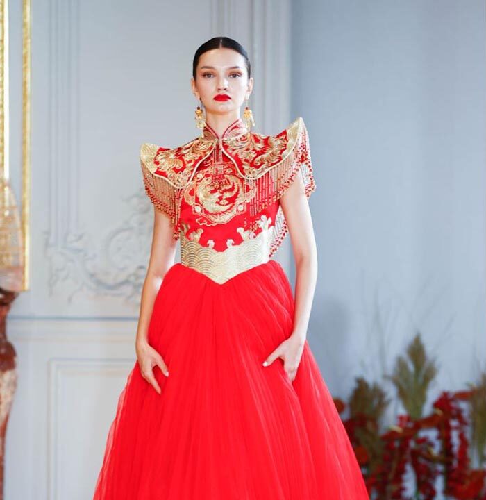 Starting from the profound foundation of traditional Chinese culture and artisan spirit, “Liu Li · LOOLAYY” expresses the warmth of cultural heritage. Using high-quality, high-end fabrics as the thread of design, it doesn’t stick to fixed conventional styles but uses a more design-sensible and vivacious brushstroke, employing haute couture thinking to conscientiously unleash fragments of romantic creativity, presenting a dual charge towards high-quality fabric and high-end design. It immerses you in appreciating the beauty of Chinese national costumes, manifesting the goals and humanistic artisan spirit of the “Chinese Wedding Culture Inheritor and Promoter.”