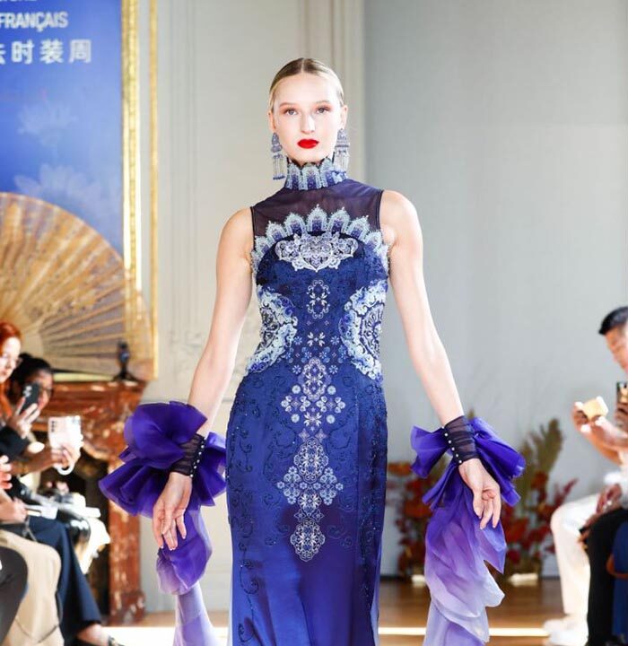 On October 4th at 13:30 local time, a Chinese high-end custom wedding culture show themed “Shang Yi · Mi Sheng” was splendidly conducted at the Centre Culturel de Chine in Paris, France. The closing show, branded “Liu Li · LOOLAYY,” employed Dunhuang elements as a vehicle, brimming with traditional Chinese culture and artisan spirit. This haute couture show has laid a profound foundation for the cultural exchange between Chinese and French clothing cultures.
