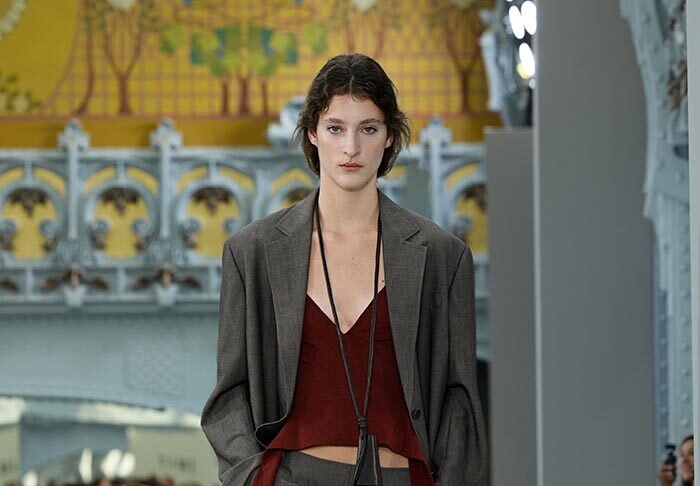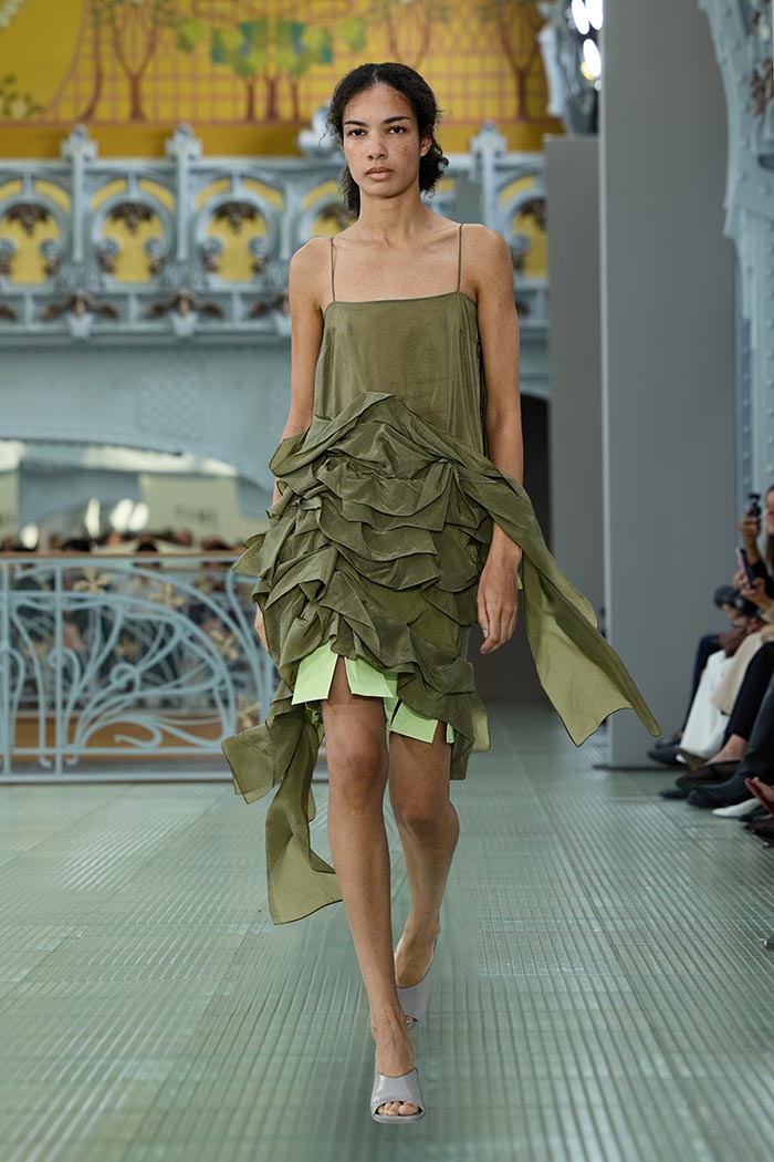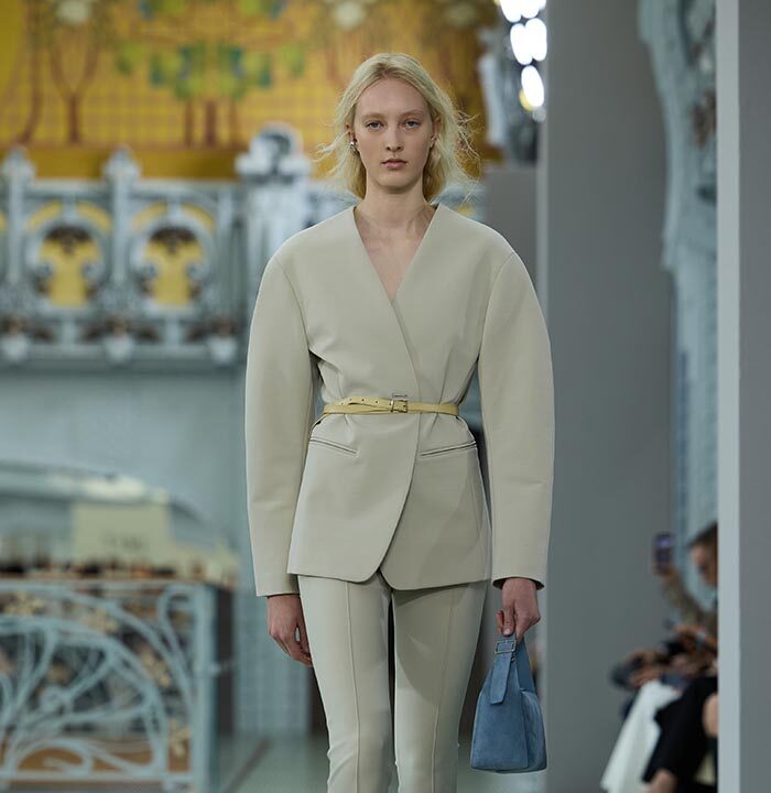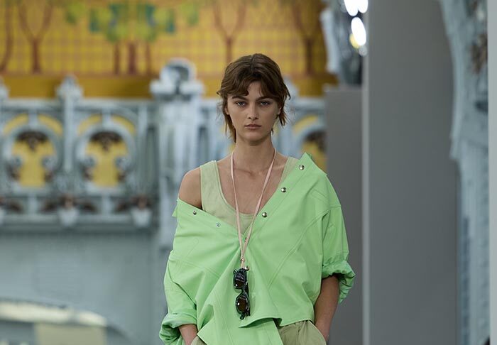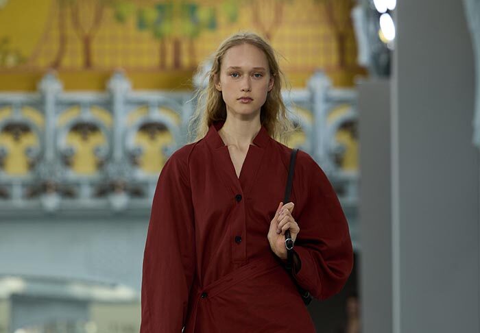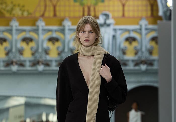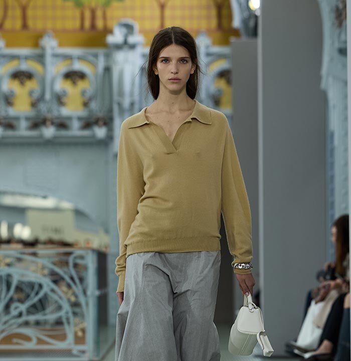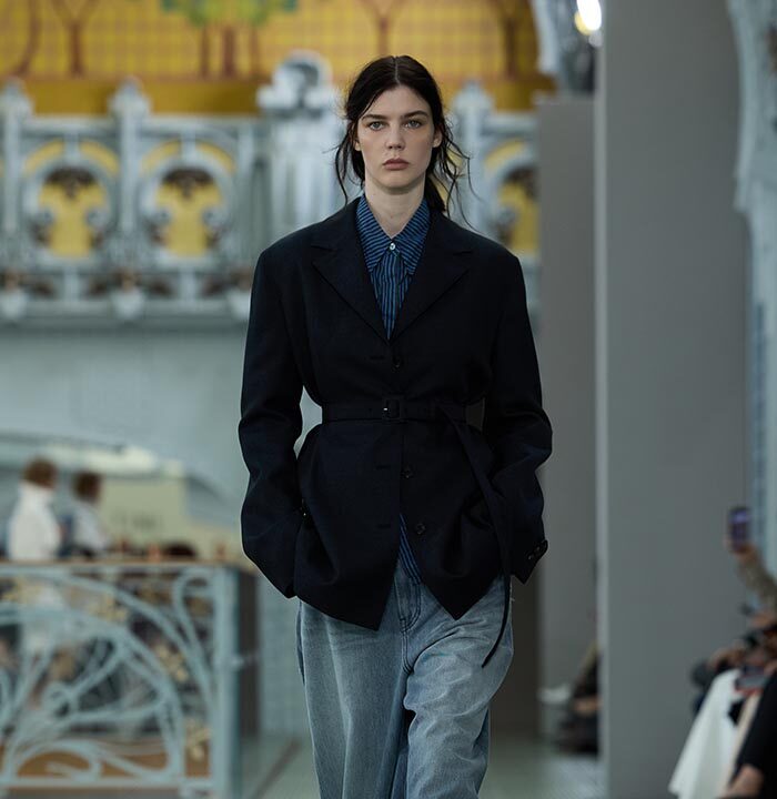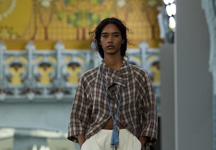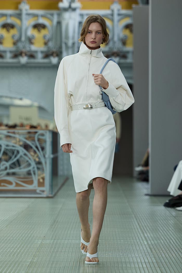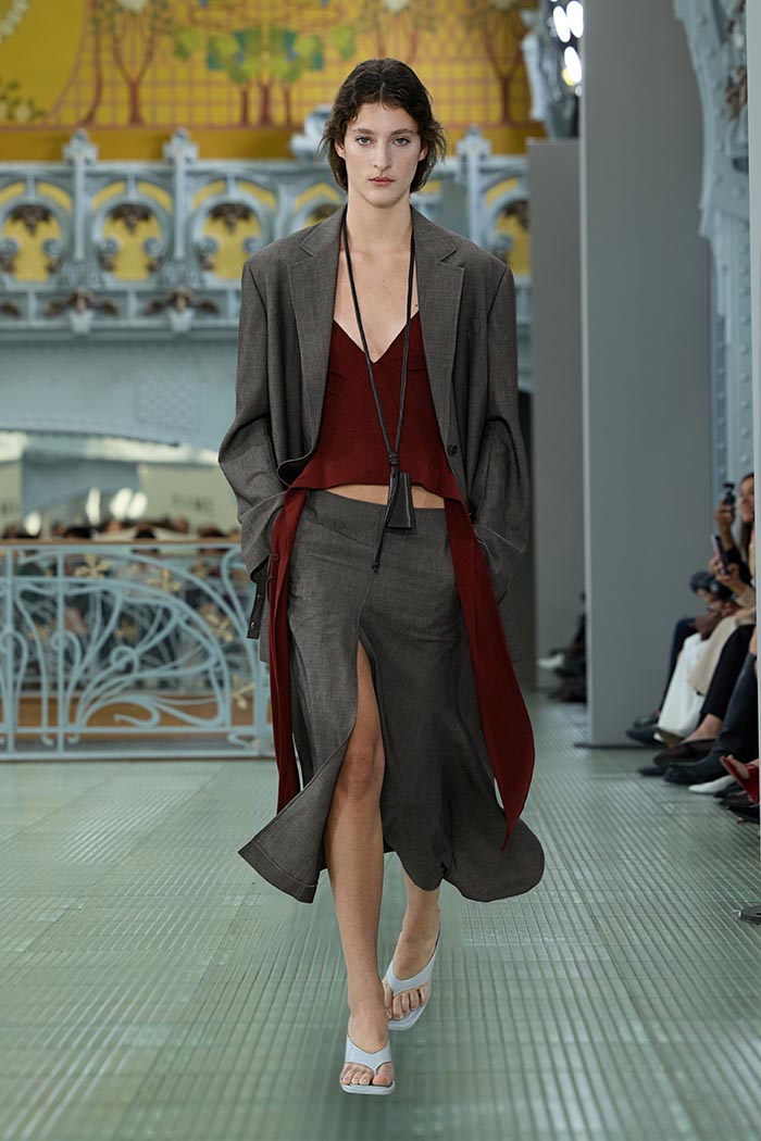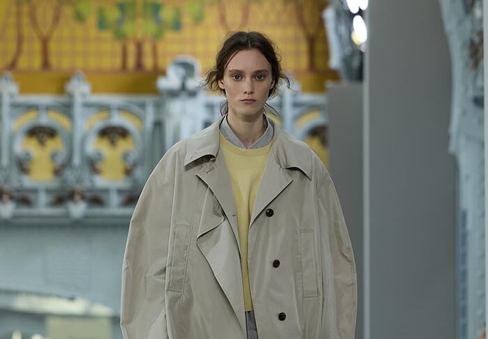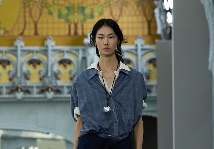 This season, design draws on streetwear, lungewear, and couture to create both harmony and clash,balance and impact. Fluid and supple, the fabrics were chosen to reinforce this play of contrasts while ‘making multiple wearings possible: sft leather, ary silk, washed denim, technical fabric. Likewise, the color palette mixes urban neutrals (light grey, anthracite, off-black, off-white, mustard yellovs) with flashes of cobalt blue, carmine red, faded rose, and lichen green.