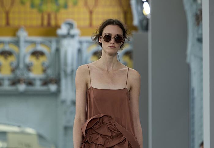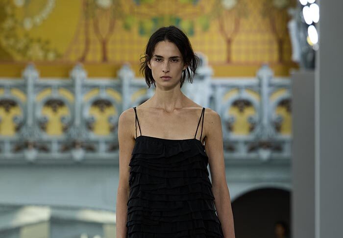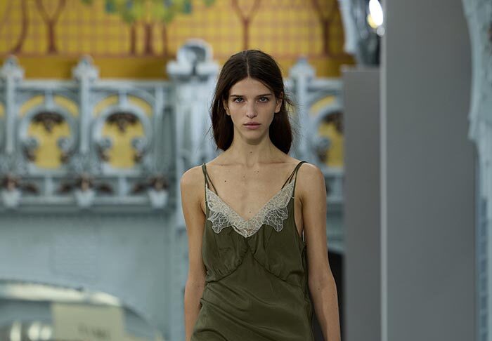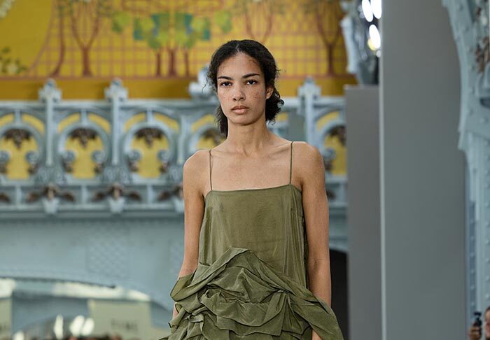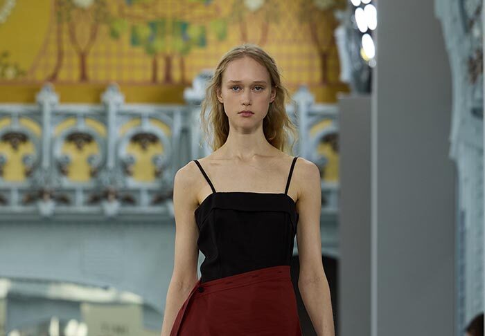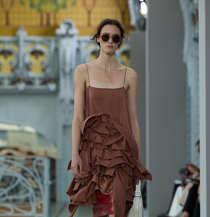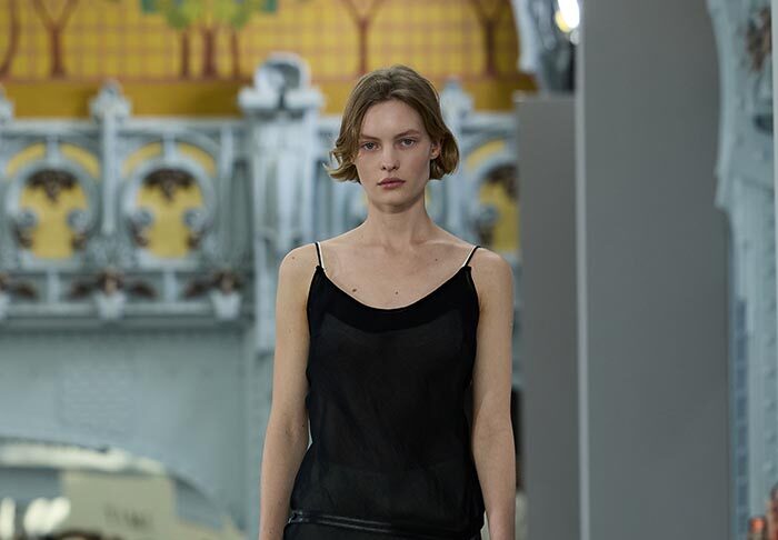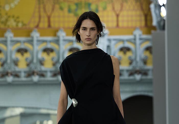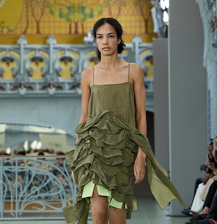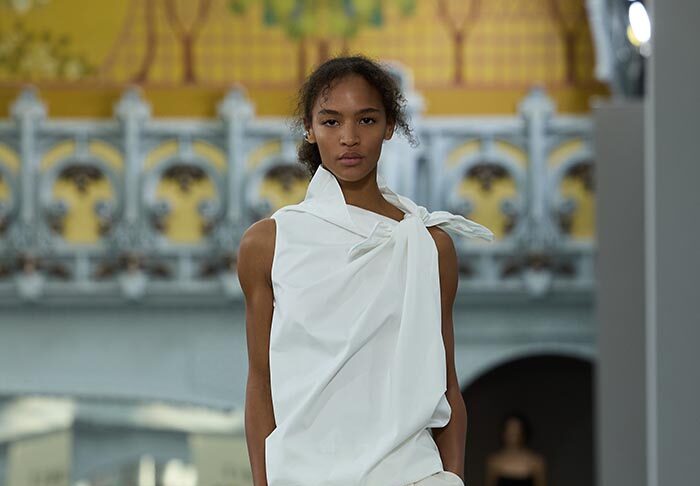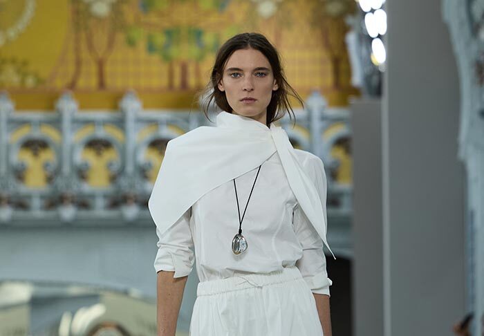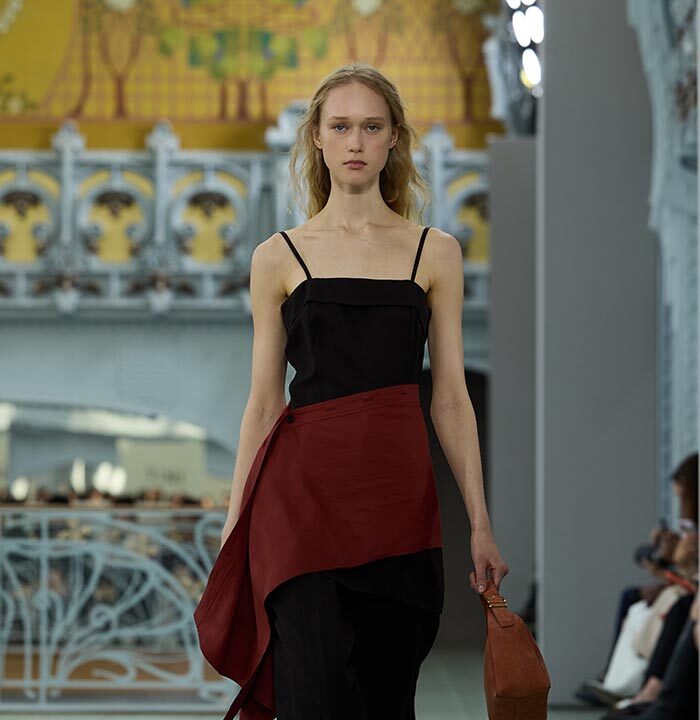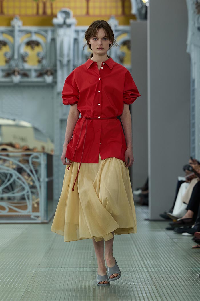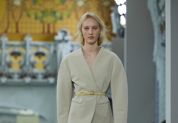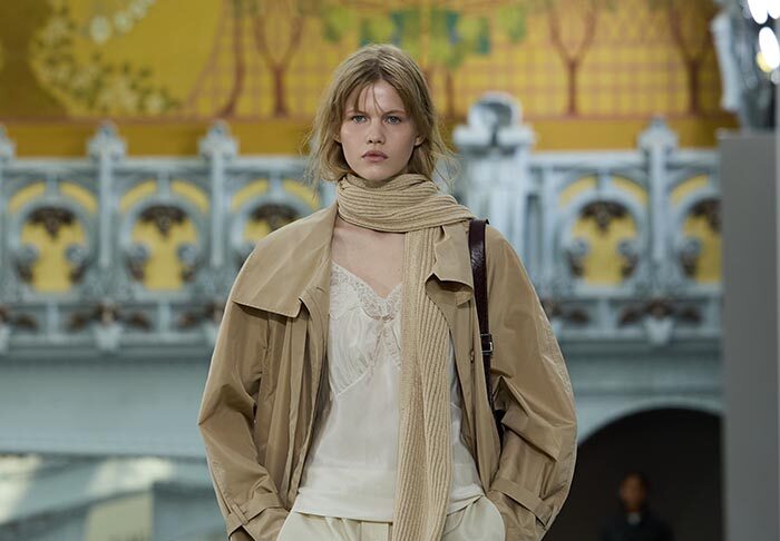 This season, design draws on streetwear, lungewear, and couture to create both harmony and clash,balance and impact. Fluid and supple, the fabrics were chosen to reinforce this play of contrasts while ‘making multiple wearings possible: sft leather, ary silk, washed denim, technical fabric. Likewise, the color palette mixes urban neutrals (light grey, anthracite, off-black, off-white, mustard yellovs) with flashes of cobalt blue, carmine red, faded rose, and lichen green.