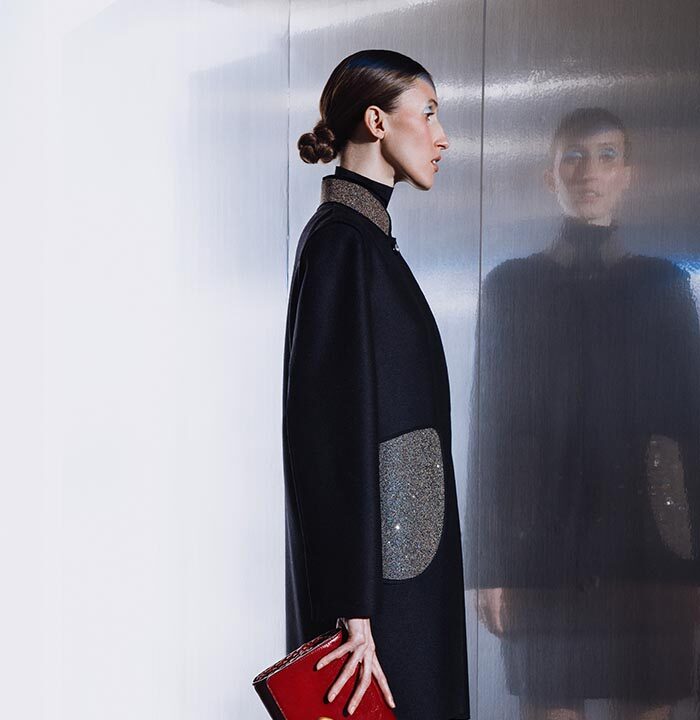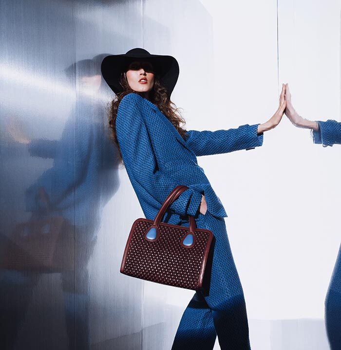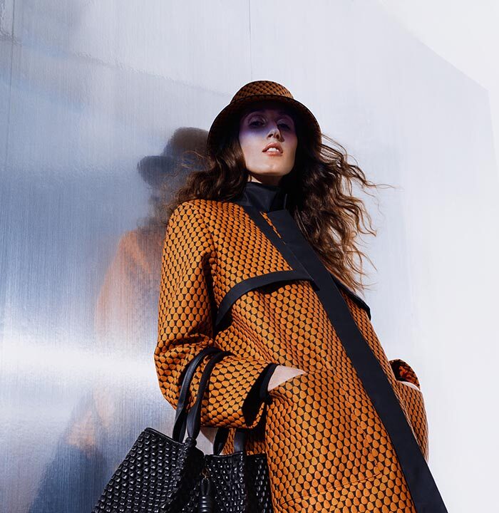 This season’s collection aims to highlight the iconic bags within a look that is not only effortlessly stylish but also immediately recognizable. Cleveland was chosen to model and fiercely heighten key ready-to-wear pieces, including outerwear such as blazers and coats, and separates like shirts, trousers and skirts made from the ultra-soft “Bubble” wool. Available in a palette of black, blue jean and orange, these versatile items are designed to be mixed and matched and incorporated into one’s existing wardrobe, to achieve the ultimate timeless elegance and modern versatility.
