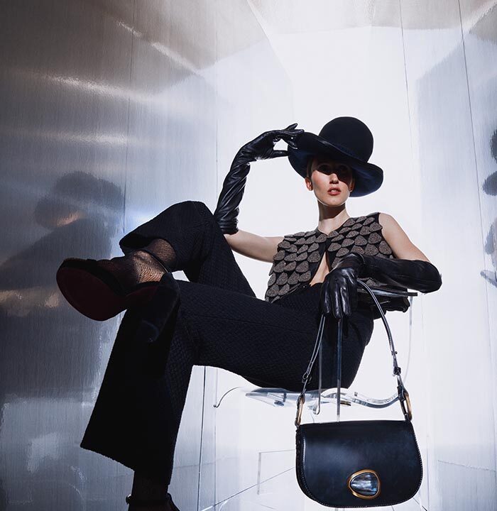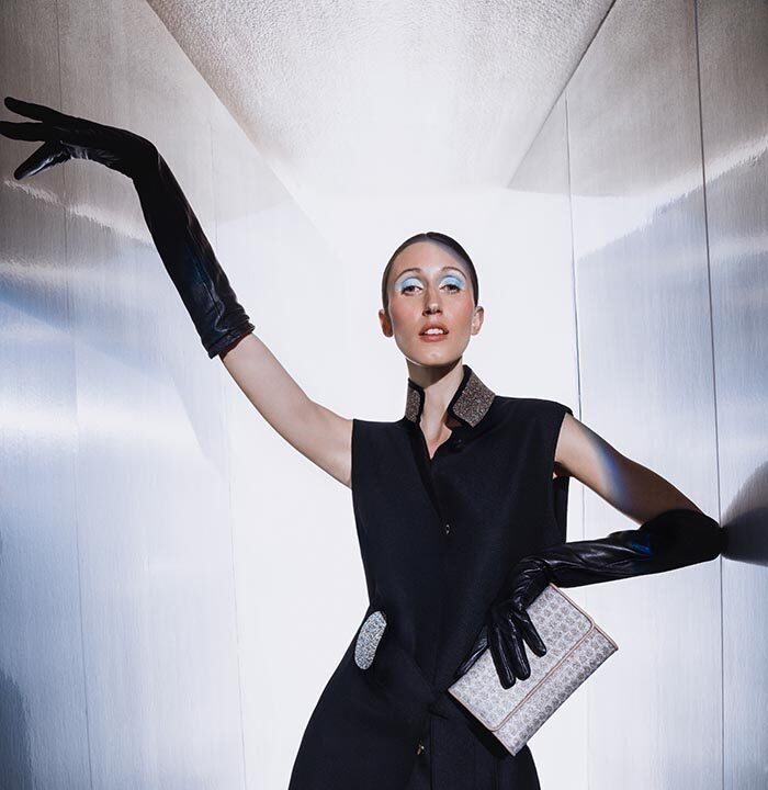 It is a full circle moment: Tissa’s career started at Daniel Swarovski in Paris, and today, the AW24 collection features pieces embellished with Swarovski’s finest crystals, adorning the handbags as well as key ready-to-wear garments in the recently expanded category for the brand, such as the “Cabaret” Bolero Vest, the hero piece, imagined to be worn for an elegant night out or the red carpet. This is symbolic to Fontaneda, who recalls her very first steps in the luxury industry, where she started to learn the intricacies of craftsmanship and the importance of impeccable quality.