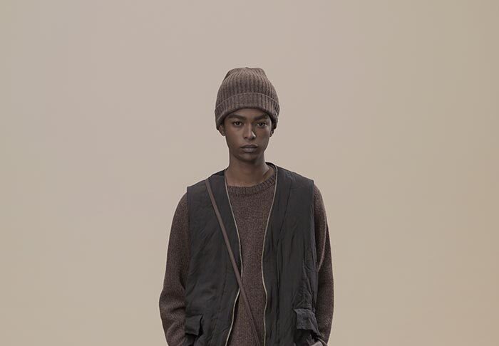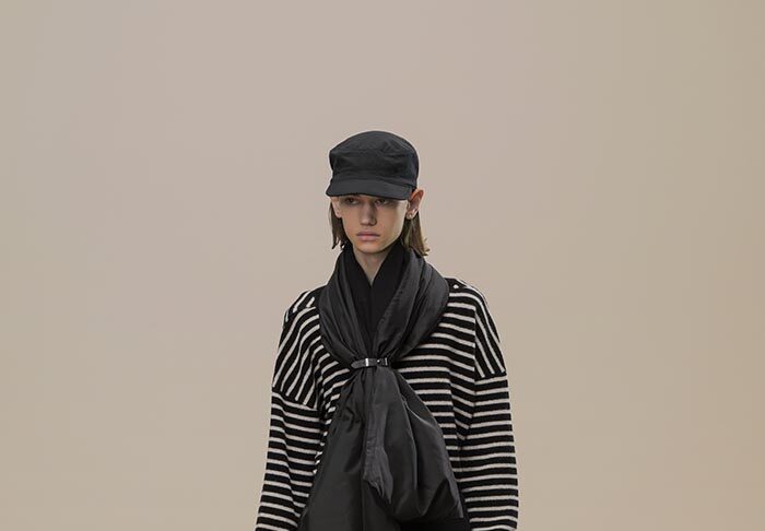 Centered around black in a variety of textures, the collection employs nuanced dark tones such as charcoal gray, deep brown, and navy.