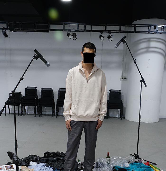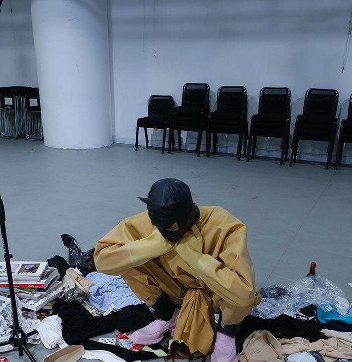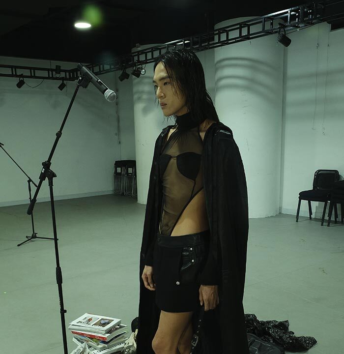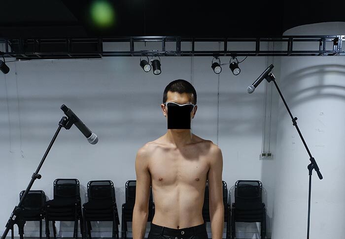 This season for their debut onto the London Fashion Week schedule, Untitlab present a performance driven live presentation directed by Nicolas Tian Cai. “Introspection” by Nicolas Tian Cai with music composed by Oscar B. Morgan, presents an intermittent mix of performances over a two-hour period. Performed by Dahc Demur VIII, Lewis Walker, Zhou Chen, Butterfly Princess, and Todd Lamming. The performance explores the emotional vibrations of human presence in a specific crypt through body movement, vocal experimentation, and ambient music with strong bass effects combined with industrial and natural environmental samples to form a contemporary and introspective landscape of presence.