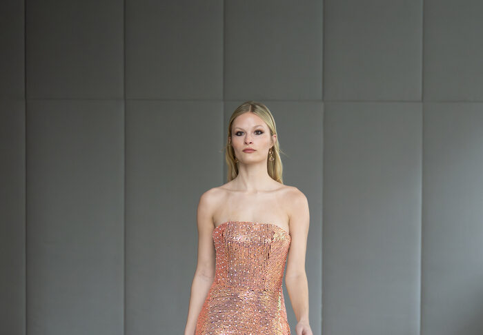 Her design philosophy is rooted in balance: simplicity and complexity, elegance and edge, softness and strength. Known for exquisite tailoring and an instinctive understanding of the female form, her work is minimalist with depth — sculptural silhouettes, architectural references, and strategic reveals of skin. Feminine but never girly, sensual but never showy, her designs empower women to feel seen and celebrated with confidence.