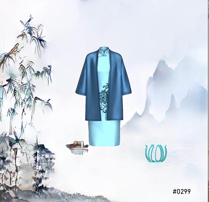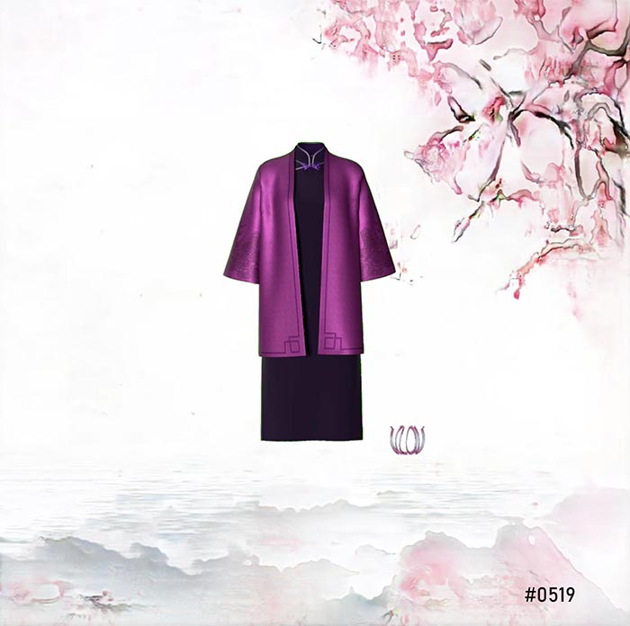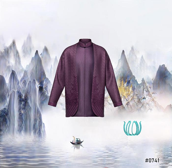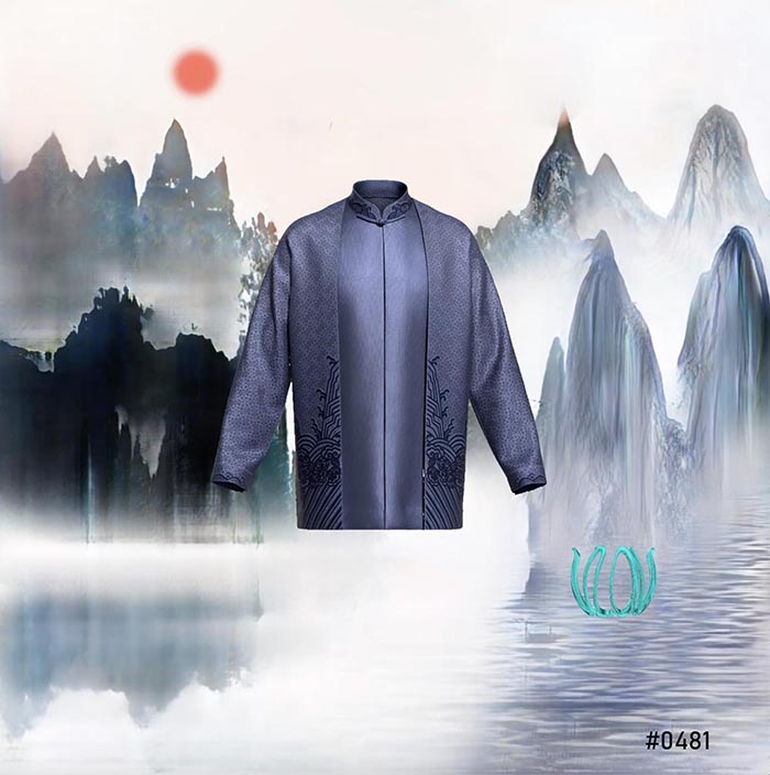 The inspiration for this NFT collection comes from the Taoist teaching, “Goodness is a virtue modeled after water; water benefits all things and does not compete”. This collection adopts many traditional elements of Chinese culture and brings the past into the present. The combining of Chinese and Western styles of fashion design creates an unprecedented hybrid aesthetic while celebrating the uniqueness of individual styles. This collection adopts stand-up mandarin collars, a pair of open plackets, raglan sleeves, jacquard embroidered patterns, and Song Dynasty brocade aesthetics. The symbolic colors used include imperial Forbidden City red, peacock azure, deep amethyst and golden bronze. The fabric is jacquard made of traditional silk and Zhang satin. The surface designs are inspired by classical patterns of majestic seawaves and river gorges representing the harmonious interdependence of APEC’s 21 economies, watching over and helping each other. The styles reflect the aesthetic style of the “amorphous elephant, large, plain and simple.