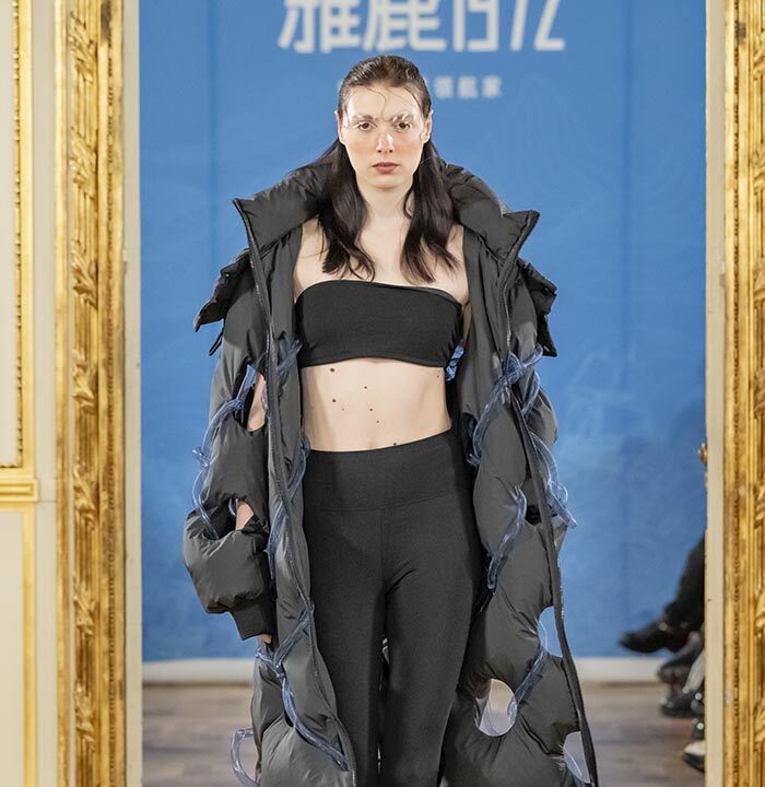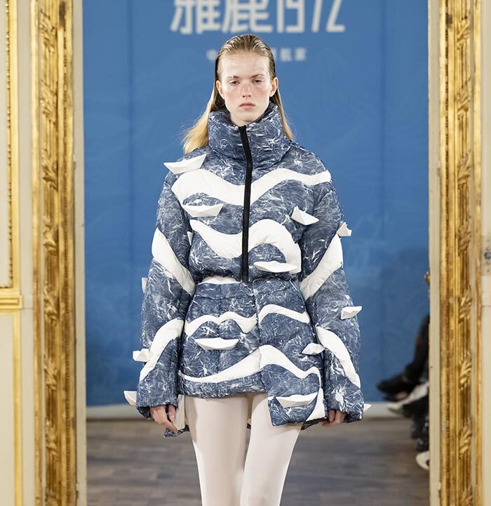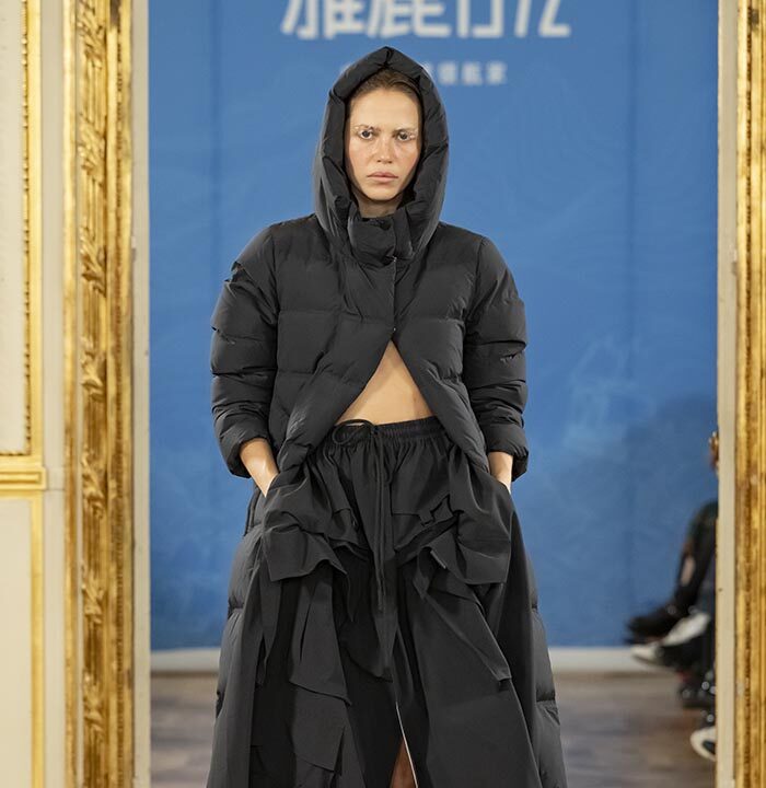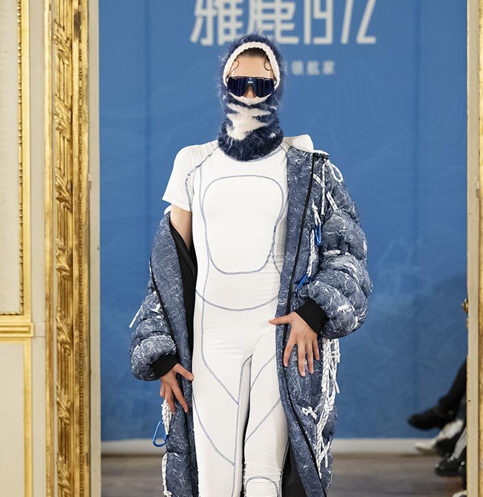 Founded in 1972 by Gu Zhenhua, YALU has grown over 52 years, culminating in the high-profession YALU 1972 line, which represents the pinnacle of the brand’s craftsmanship. The Paris Fashion Week collection was inspired by Chinese culture, particularly Zheng He’s maritime expeditions, combining marine aesthetics with innovative down jacket designs. Set in the neoclassical Hôtel Mona Bismarck, the show fused Eastern aesthetics with Western architecture, offering a vivid tribute to the spirit of exploration and breaking design boundaries, much like China’s ancient maritime history.