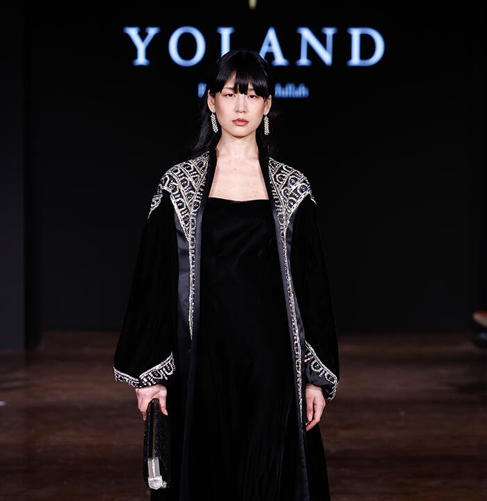 In January 2025, she presented the first part of the Empire collection, which tells the story of Omani civilisation, its ancient architecture, the beauty of gold and silver colours and distinctive engravings. In Milan, Yoland presented the second part of this collection, a tribute to the history and elegance of the modern woman.