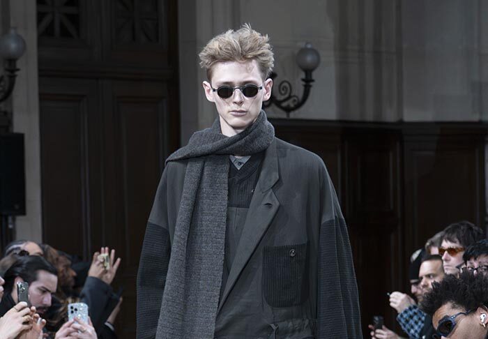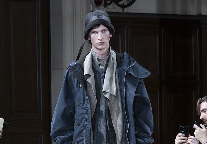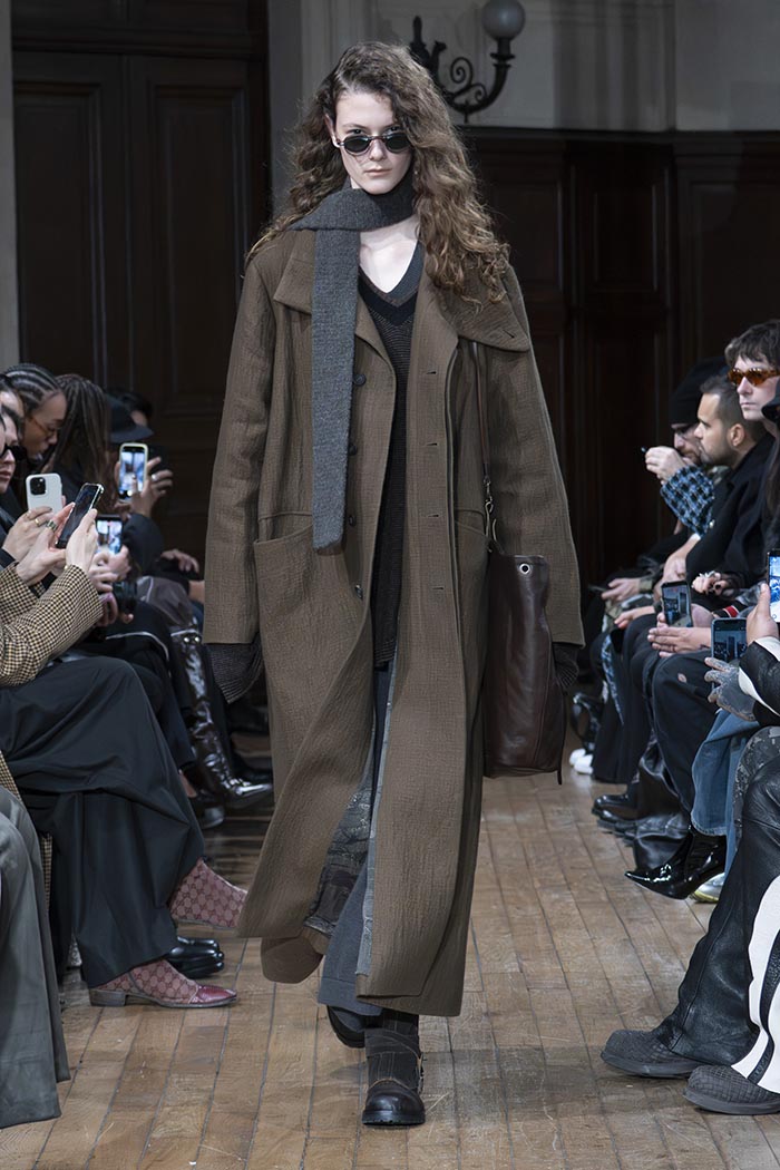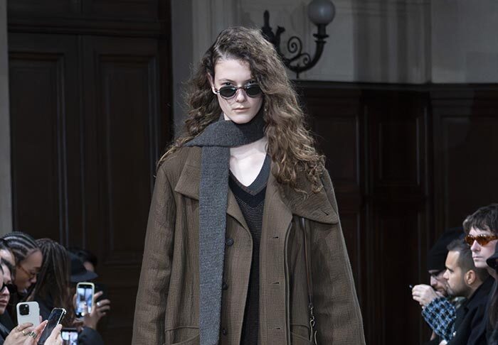 Accessories follow the same logic. Layered footwear, braided leather, metal elements, and cashmere scarves support function, avoiding ornament for its own sake.