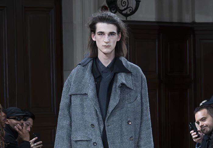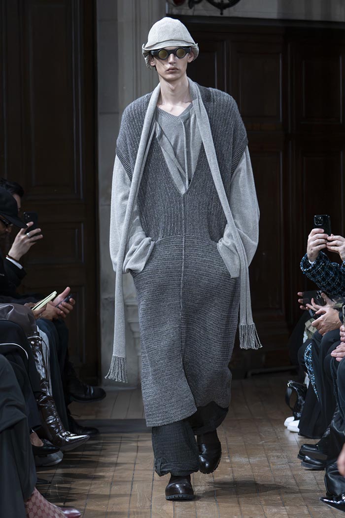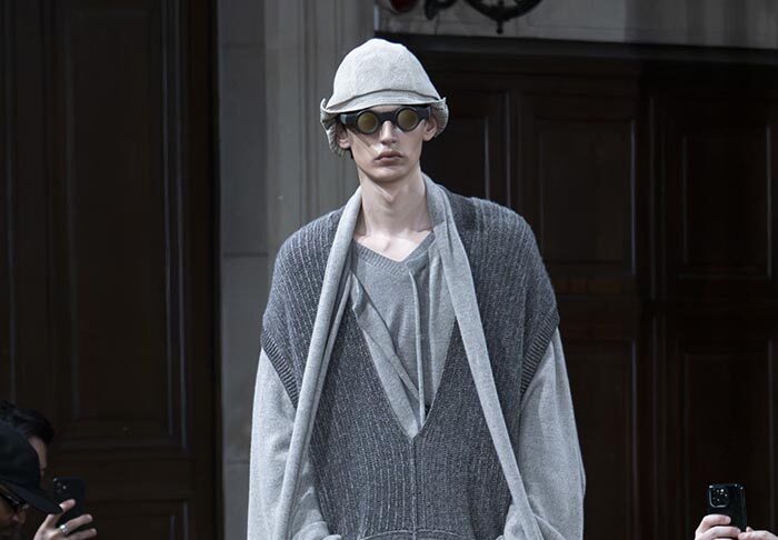 Colour appears in restrained tones: warm browns, softened greys, deep grey-blues, black, and muted grey-yellow hues. Layers accumulate with discretion, creating depth without weight. Natural fibres—wool, cashmere, hemp, linen, silk—anchor the collection in an honest materiality. Irregular yarns and bouclé preserve traces of process, where imperfection is neither hidden nor corrected.